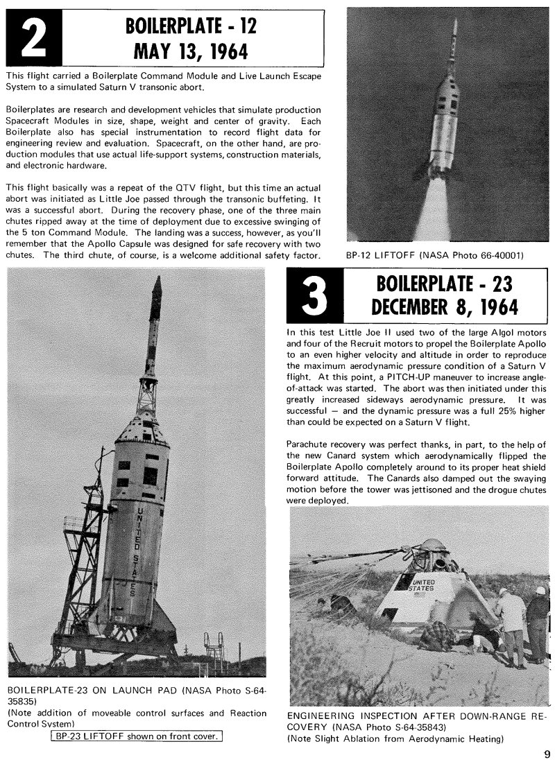 Technical pamplet on the solid booster used to test the Apollo Command and Service module aerodynamics. It looks sort of stubby, but it was almost as big as a Mercury-Atlas rocket. The original scans are a bunch of TIF files; I've downsized and converted them to JPGs for ease of reading. Here are the 12 pages: